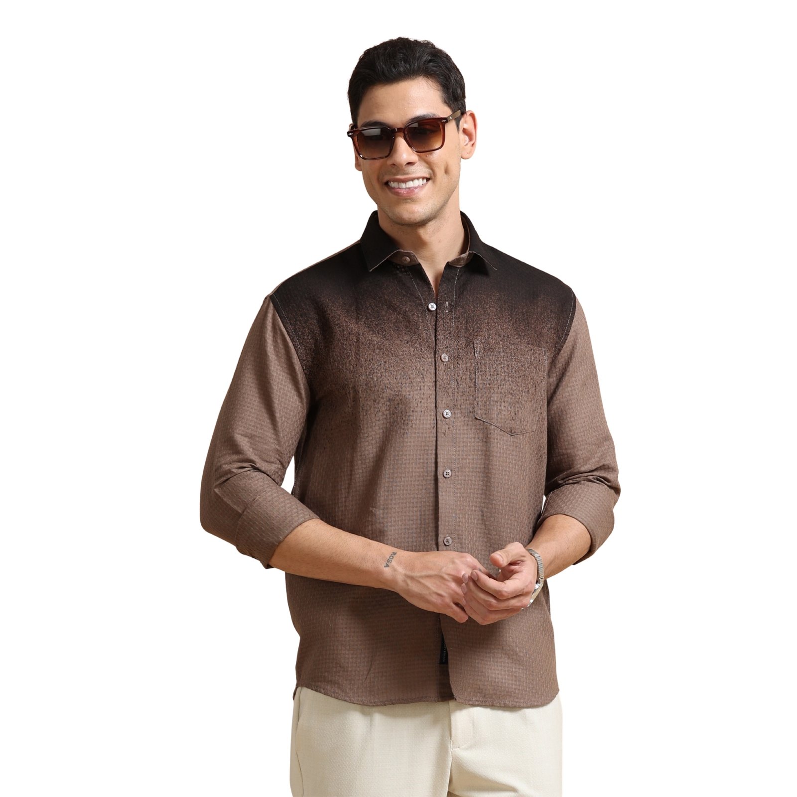 Dual-Tone Brown Textured Shirt – Distinctive and Refined