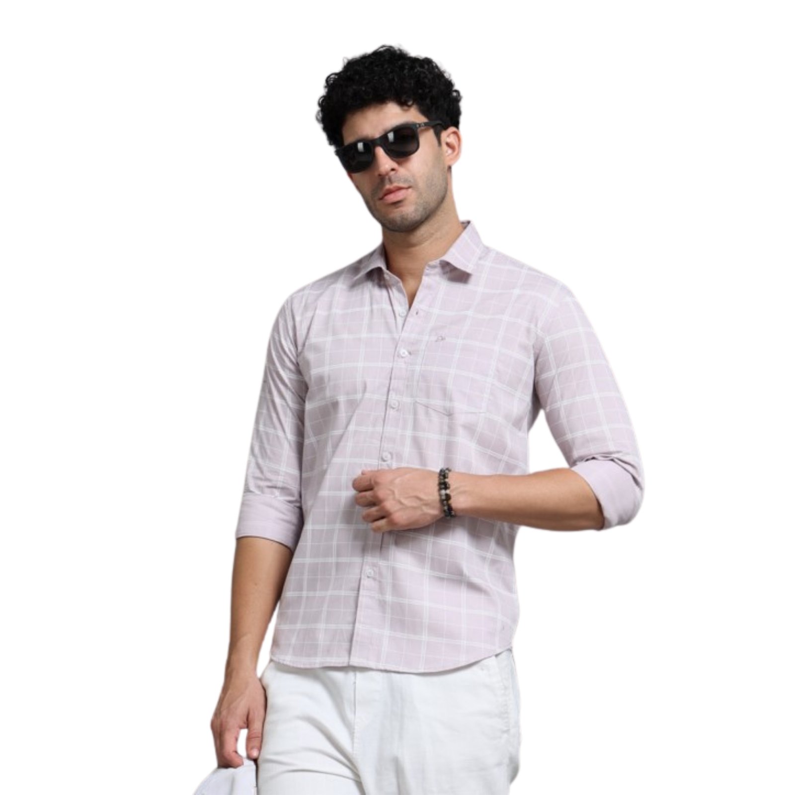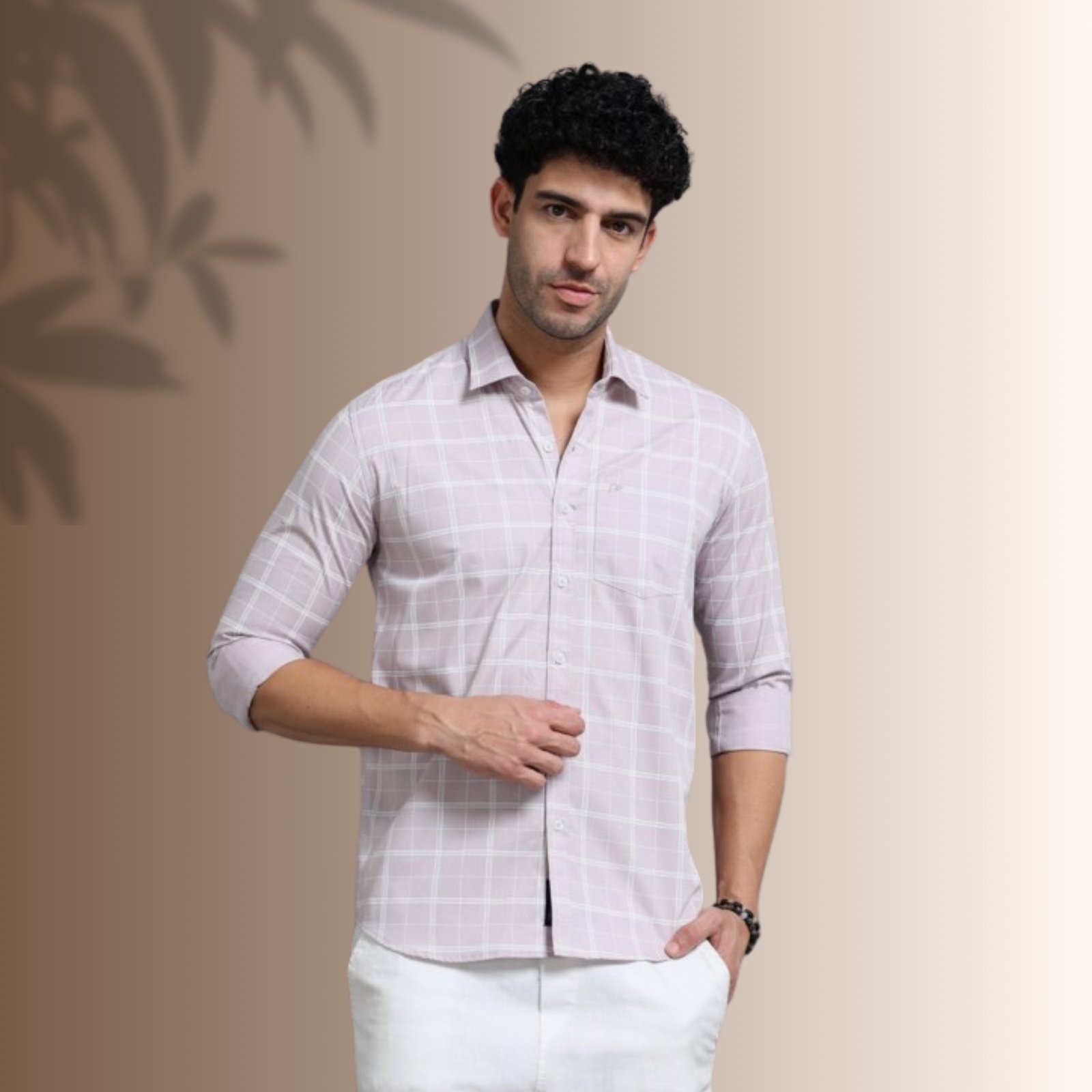 Add a refined touch to your wardrobe with this dusty rose windowpane shirt from Hearty Benison. Designed with a soft rose base and clean white grid pattern, this shirt blends modern sophistication with timeless style.