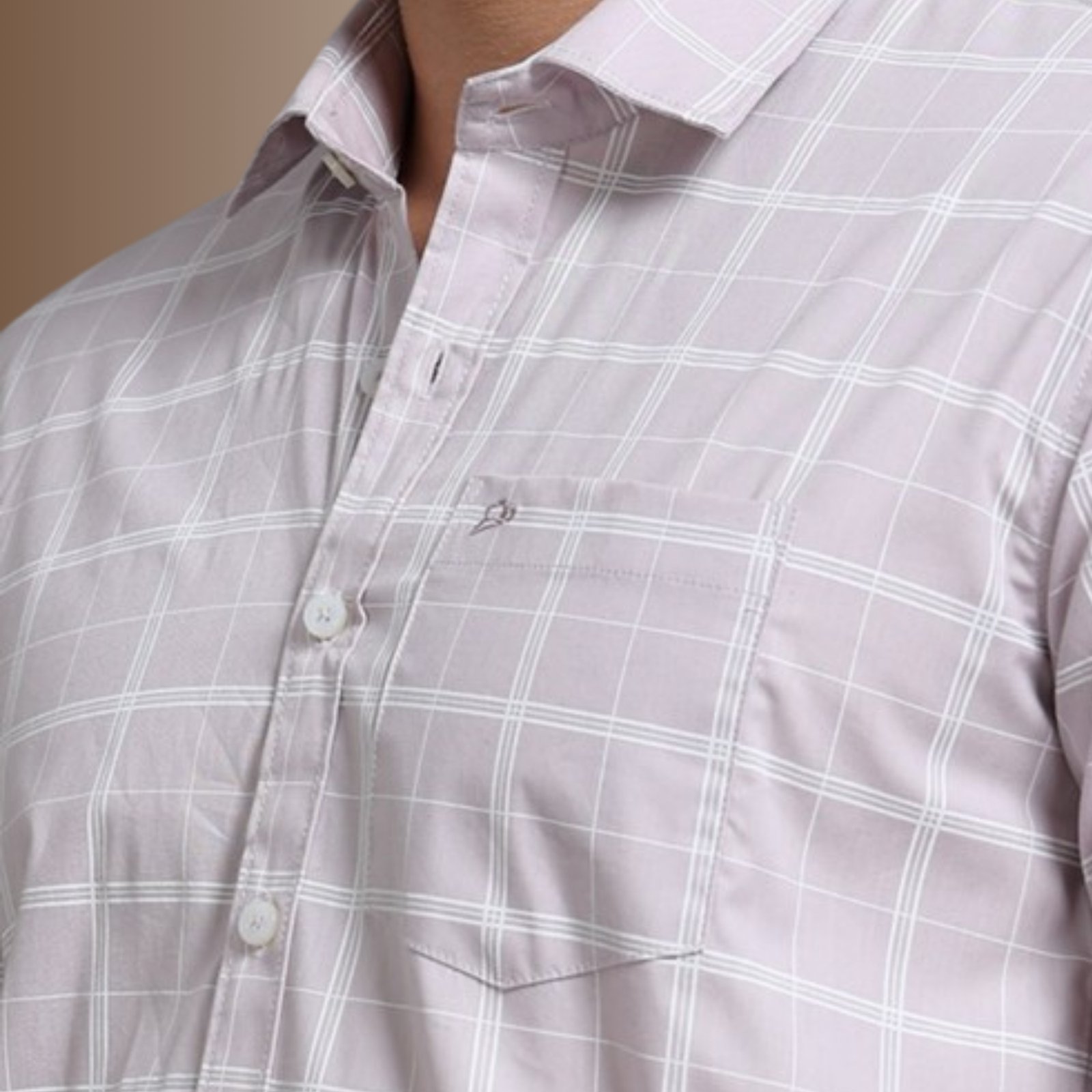 The crisp collar, matching buttons, and neatly tailored chest pocket with signature logo enhance its premium finish. The subtle windowpane design adds structure while keeping the look light, stylish, and versatile.