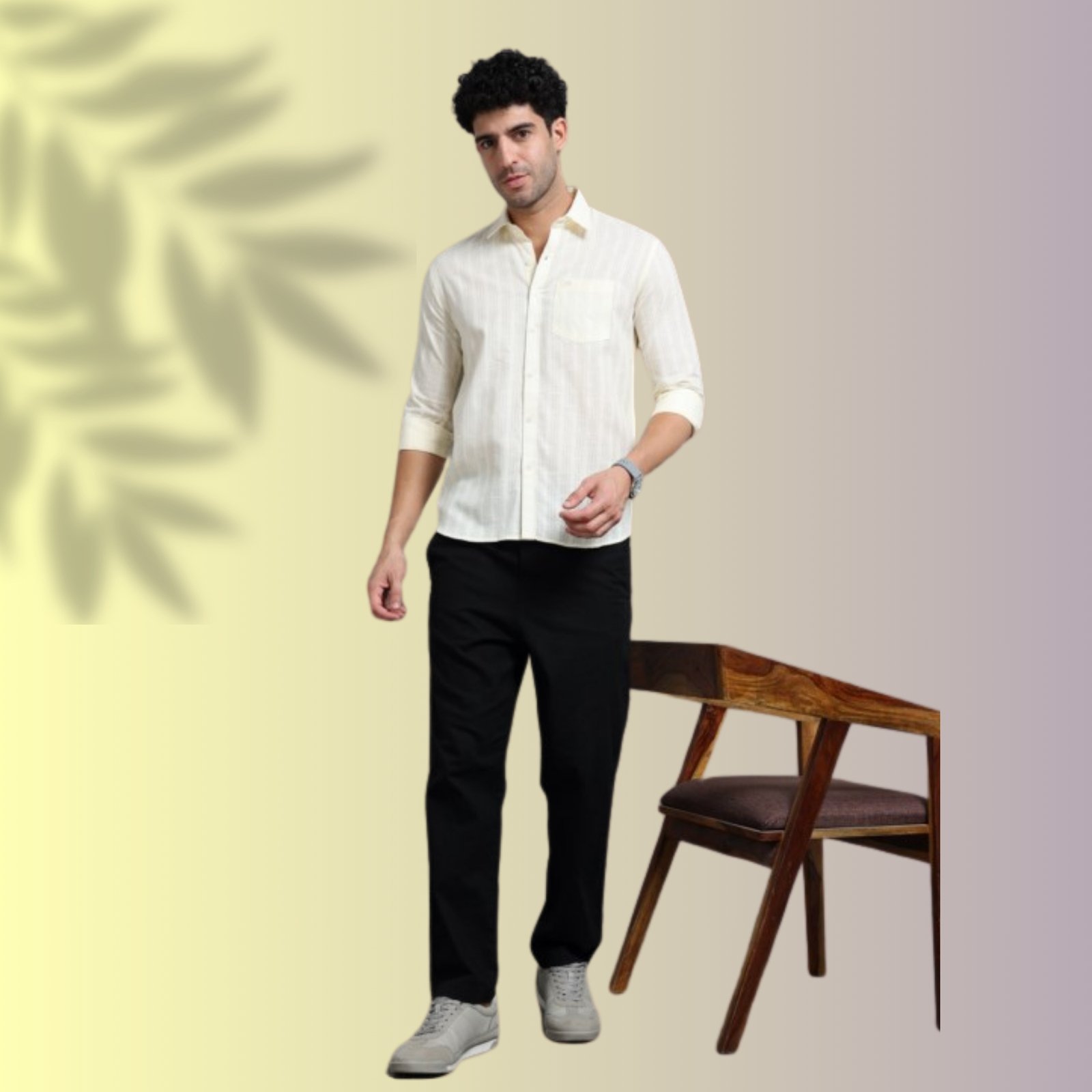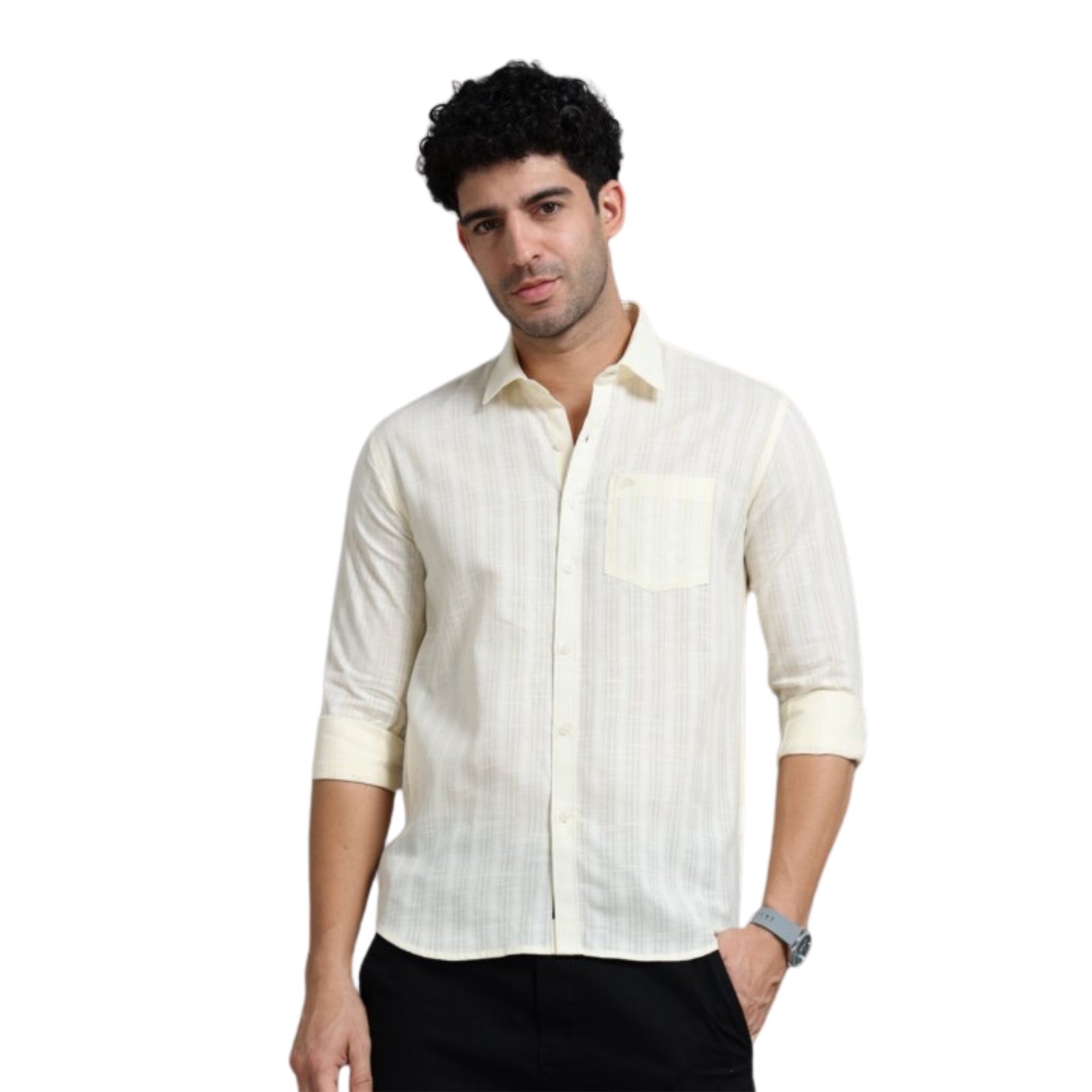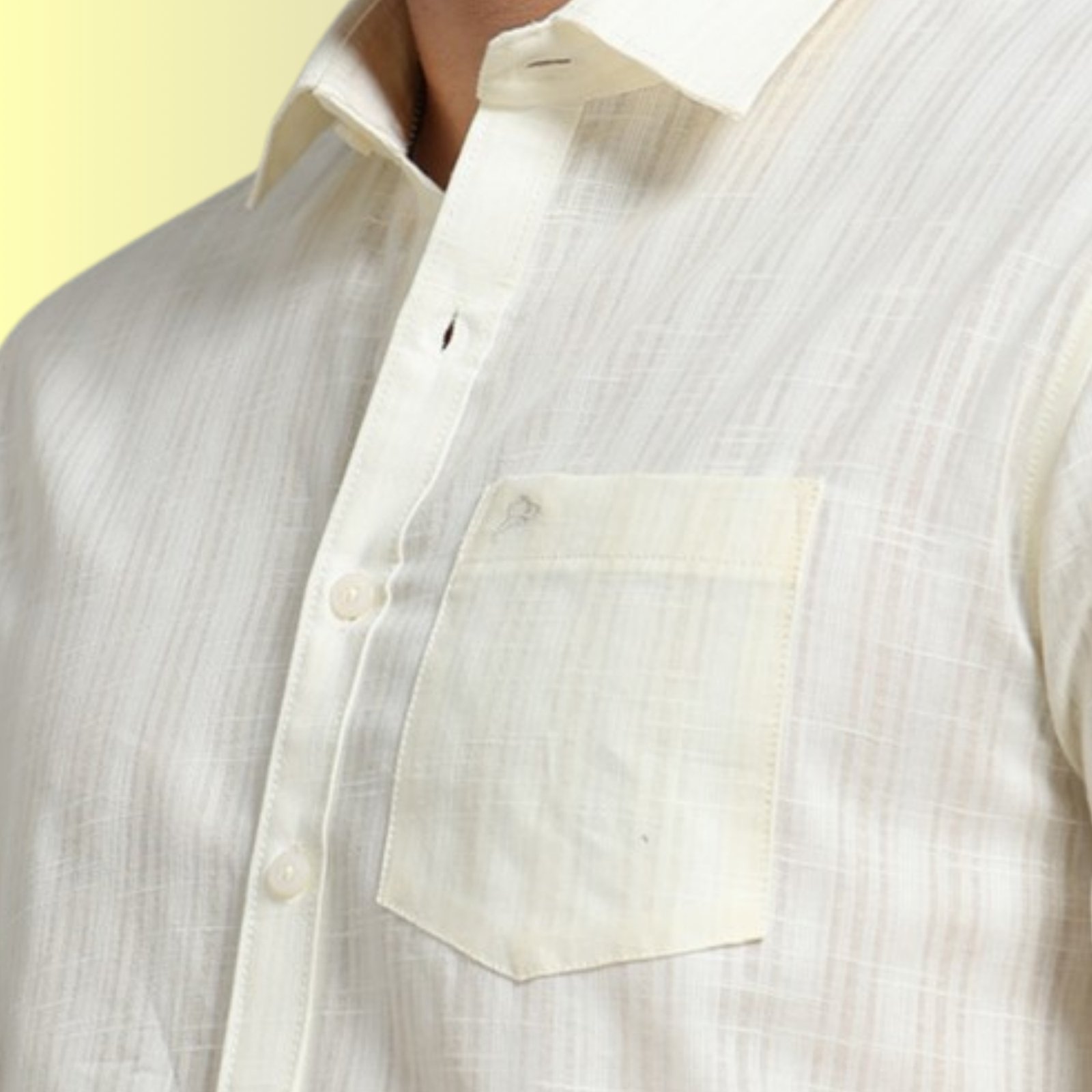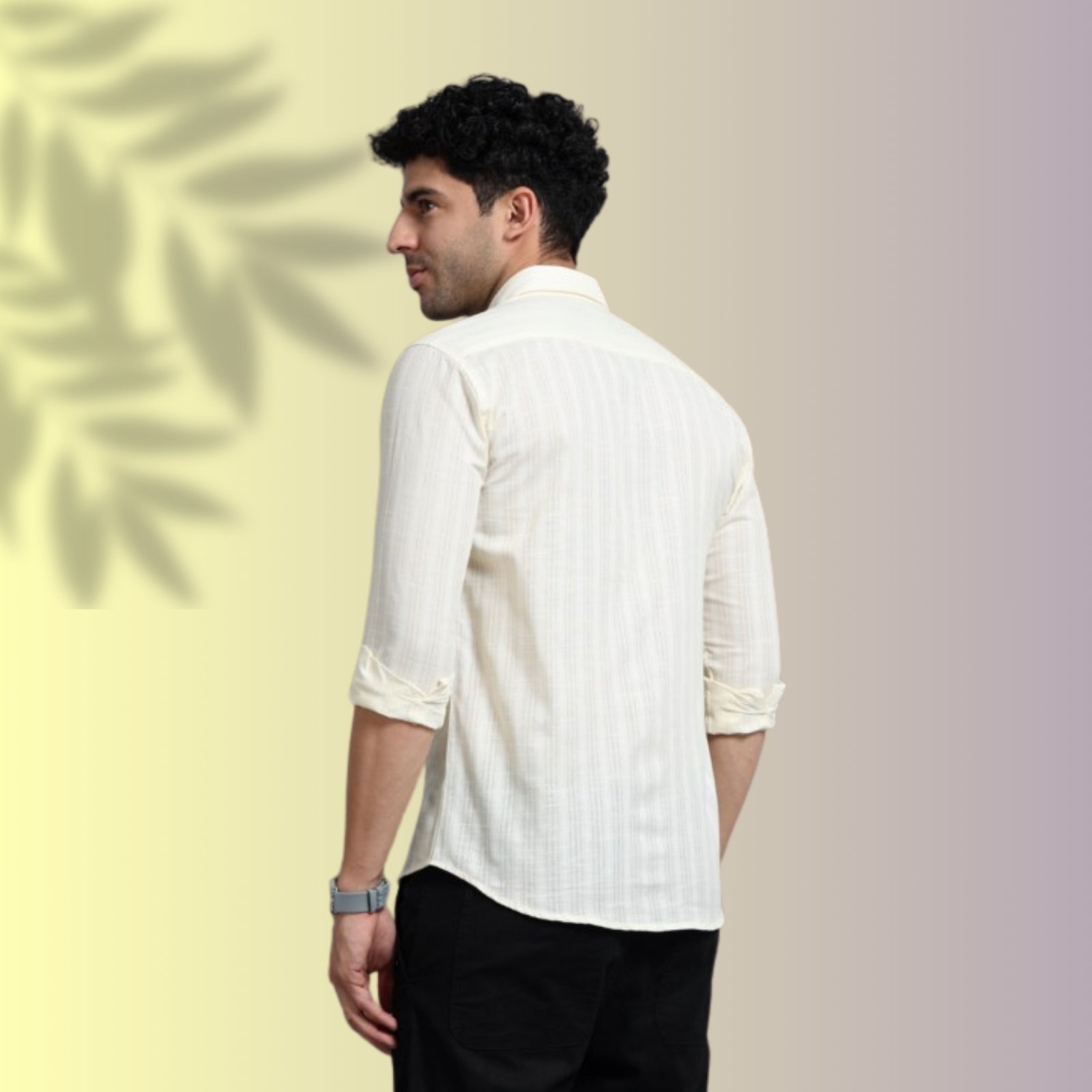 Bring timeless elegance to your wardrobe with this ivory cream textured shirt from Hearty Benison. Featuring subtle vertical texture detailing on a soft cream base, this shirt offers a sophisticated and polished look.