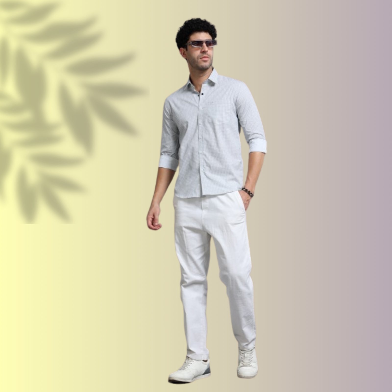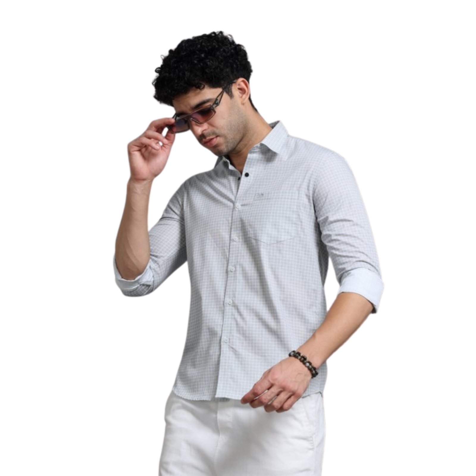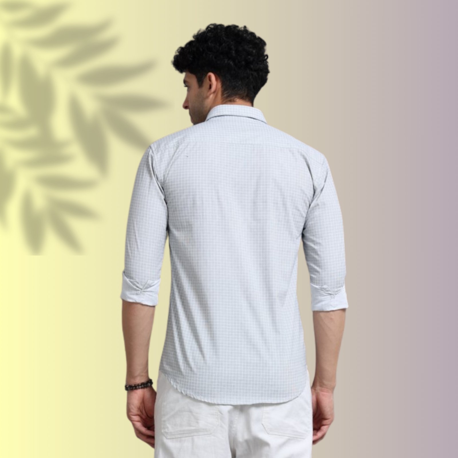 Light Grey Micro Check Shirt – Clean and Contemporary