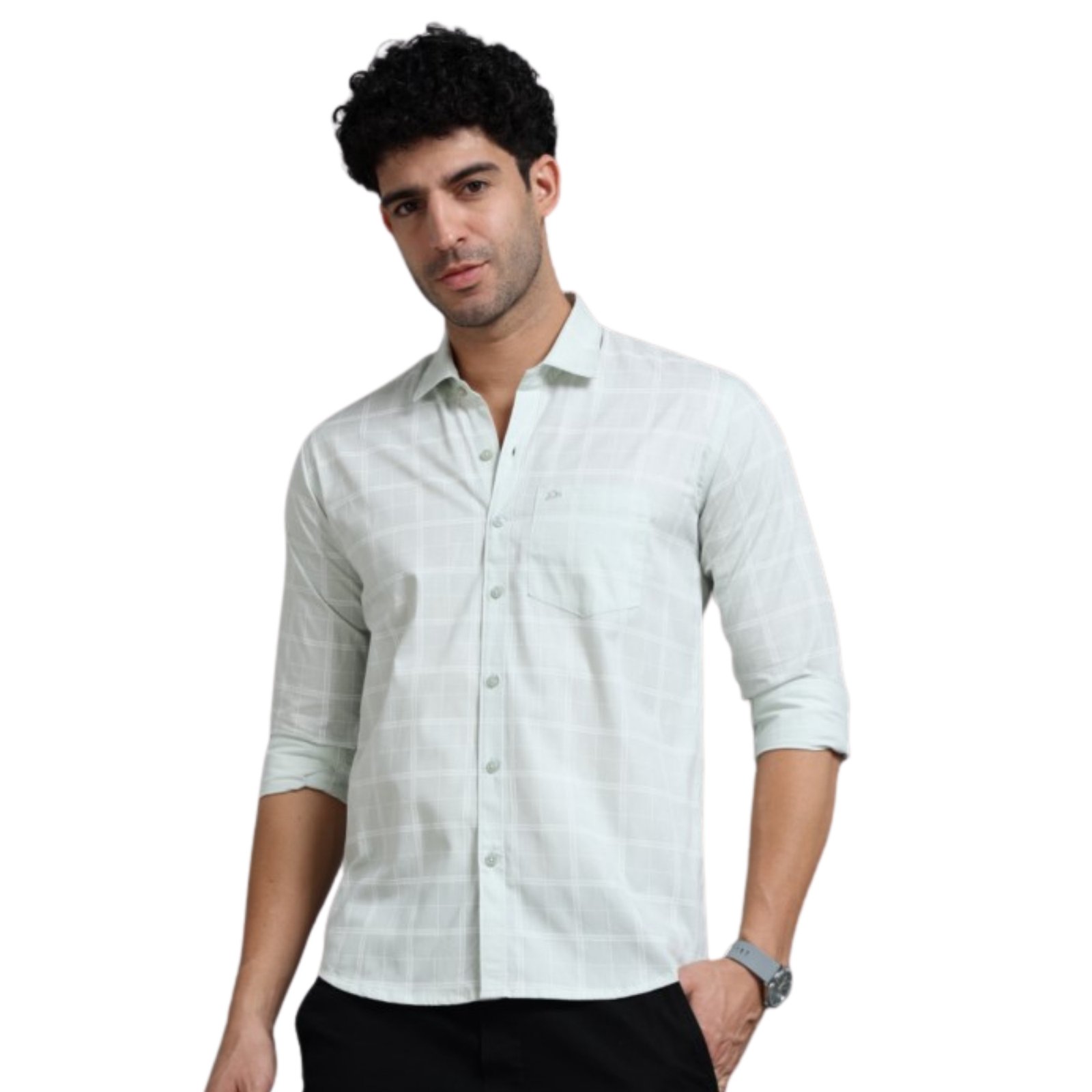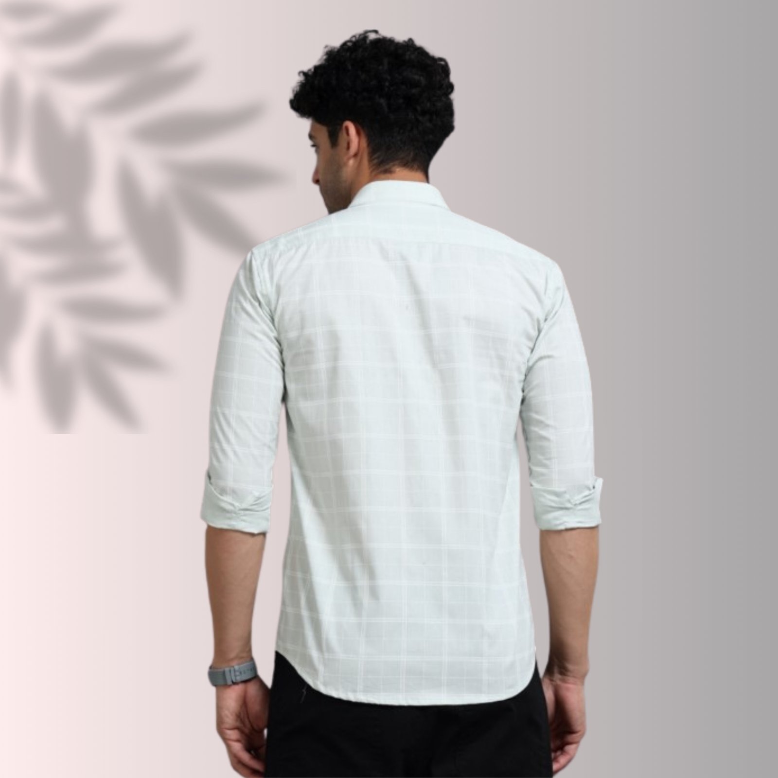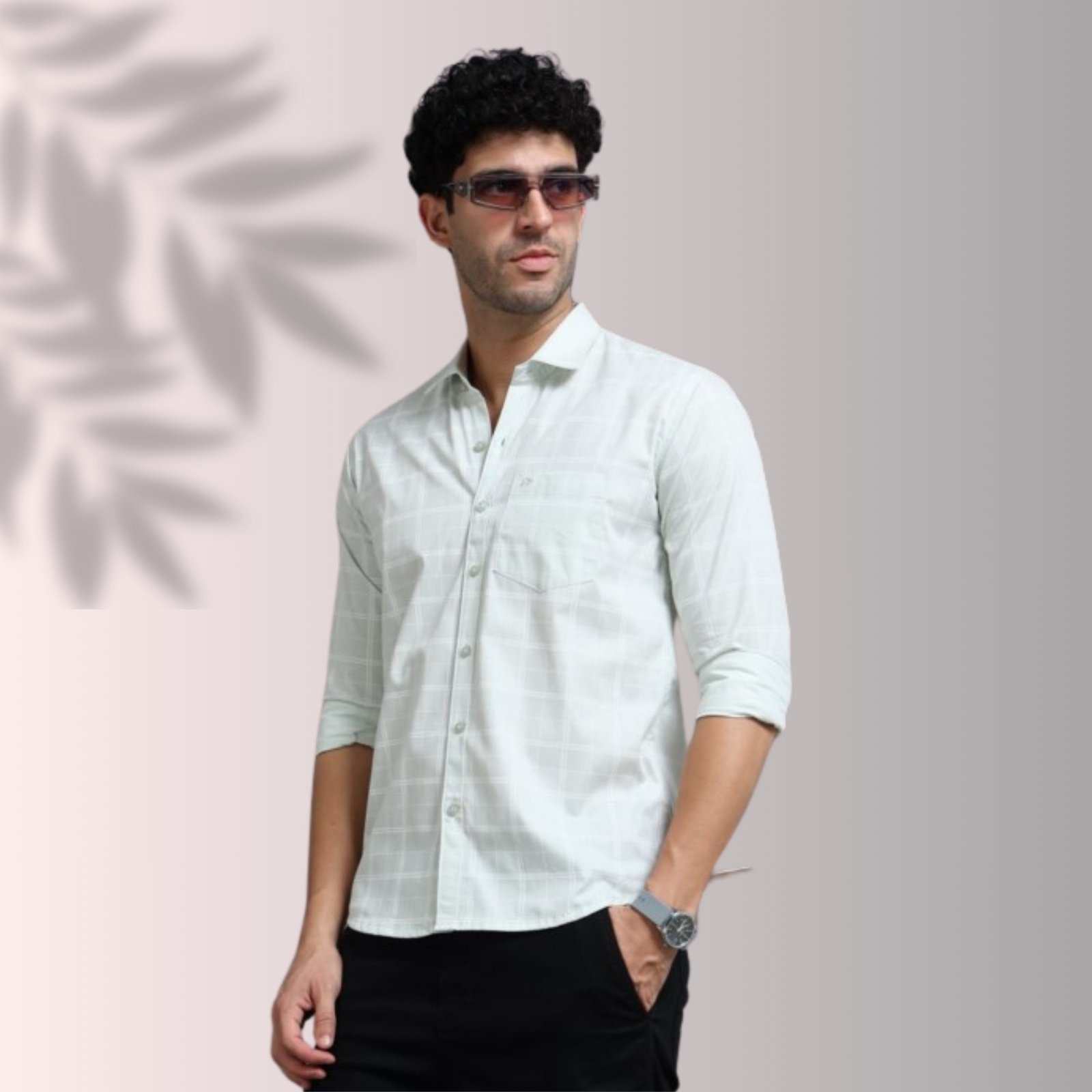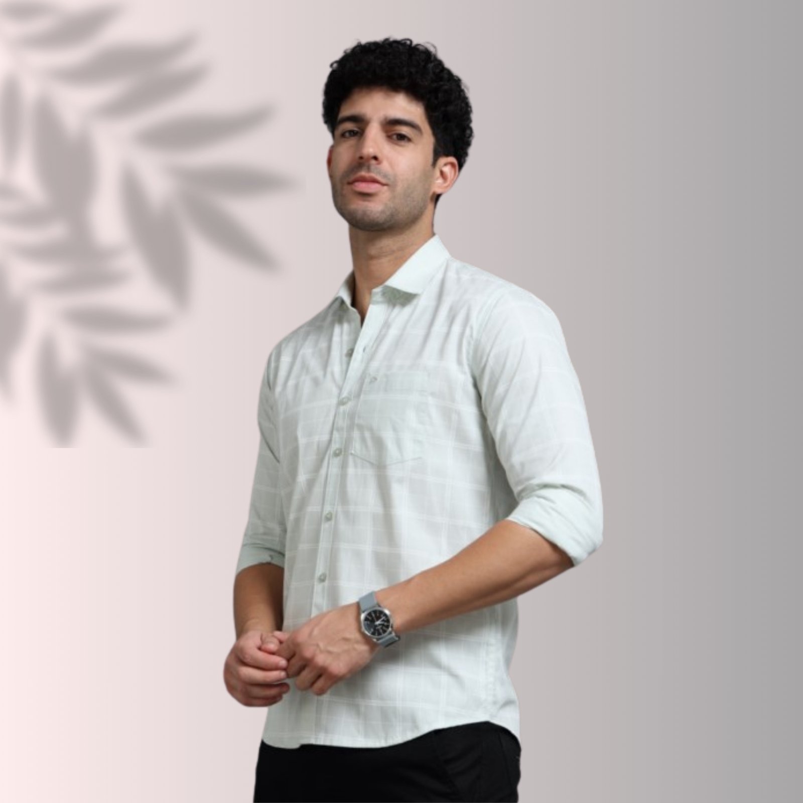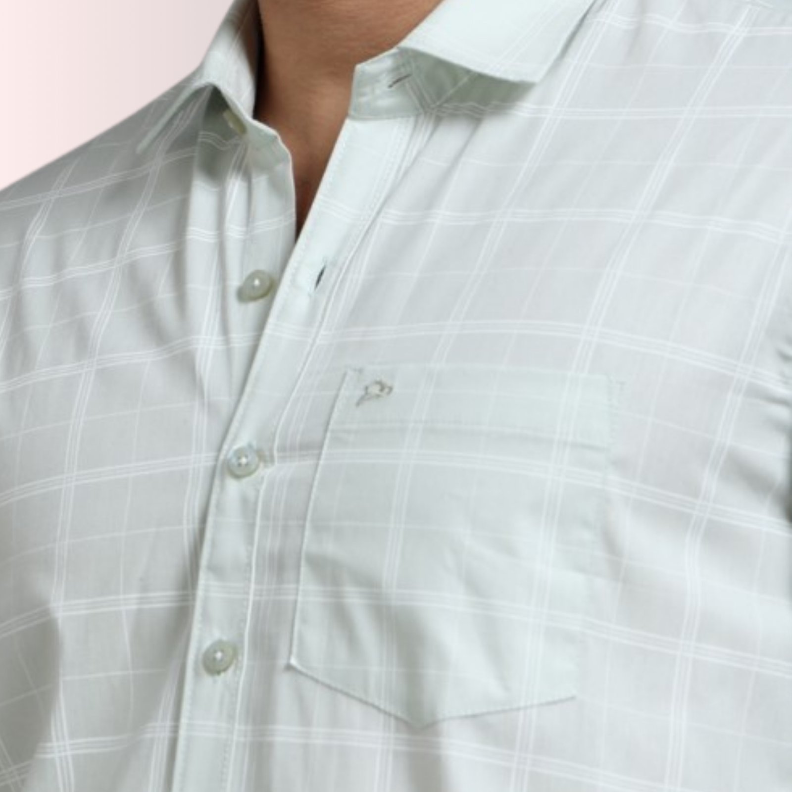 Refresh your style with this mint green windowpane shirt from Hearty Benison. Designed with a soft mint base and subtle white grid pattern, this shirt offers a light, clean look with contemporary appeal.